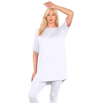 Versatile Summer Essential: This ladies' short sleeve oversized t-shirt tunic top is a must-have for any wardrobe. Perfect for a laid-back day, it offers a chic and comfortable fit that pairs well with any outfit. Premium Fabric Blend: Made from a soft and stretchy blend of 95% Viscose and 5% Elastane, this women's oversized summer t-shirt dress ensures maximum comfort and breathability, keeping you cool and stylish. Easy Care Instructions: This plain oversized summer t-shirt is machine washable, making it easy to maintain and ideal for everyday wear. Effortless Style: Featuring a simple yet elegant round neck design, this longline t-shirt for women offers a classic look that complements any wardrobe. Convenient Pull-On Closure: With its convenient pull-on closure, this oversized t-shirt mini dress is easy to slip on and off, making it a practical choice for busy mornings and relaxed evenings.