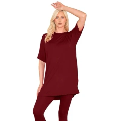 janisramone® Women's T Shirts, Casual Short Sleeve Tops for Women UK Soft & Comfortable Oversized Tunic Baggy Pj Dress Perfect Ladies Summer Wine