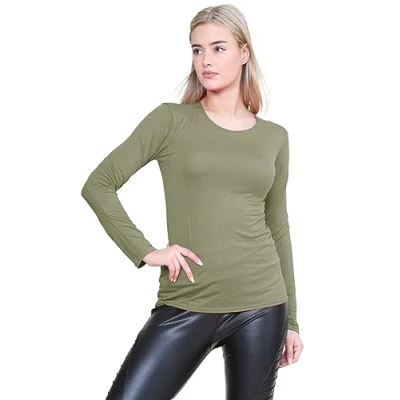 Amazon Premium Fabric Blend: Crafted from 95% viscose and 5% elastane, this long sleeve t-shirt offers a soft, stretchy, and comfortable fit, making it a perfect addition to your collection of long sleeve tops women Timeless Design: Featuring a classic round neckline and a slim fit, this long sleeve t-shirt is a versatile wardrobe staple. It can be worn alone or layered, ideal for those looking for long sleeve t shirts women. Flattering Fit: Designed to enhance your silhouette with its stretchy, slim fit, this ladies long sleeve t shirt provides ultimate comfort and excellent coverage, making it a must-have in long sleeve tops for women UK. Most sizes are available in size 16 to 22 and up. Durable and Easy Care: With easy hand wash care instructions, this long sleeve top retains its shape and softness, ensuring long-lasting wear for those in search of reliable long sleeve cotton tops women. Versatile for Any Occasion: Whether dressing it up as a black long sleeve top or keeping it casual as a white long sleeve top women, this lightweight women's long sleeve tops is perfect for any occasion, making it an essential item.