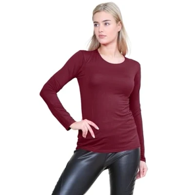 Premium Fabric Blend: Crafted from 95% viscose and 5% elastane, this long sleeve t-shirt offers a soft, stretchy, and comfortable fit, making it a perfect addition to your collection of long sleeve tops women Timeless Design: Featuring a classic round neckline and a slim fit, this long sleeve t-shirt is a versatile wardrobe staple. It can be worn alone or layered, ideal for those looking for long sleeve t shirts women. Flattering Fit: Designed to enhance your silhouette with its stretchy, slim fit, this ladies long sleeve t shirt provides ultimate comfort and excellent coverage, making it a must-have in long sleeve tops for women UK. Most sizes are available in size 16 to 22 and up. Durable and Easy Care: With easy hand wash care instructions, this long sleeve top retains its shape and softness, ensuring long-lasting wear for those in search of reliable long sleeve cotton tops women. Versatile for Any Occasion: Whether dressing it up as a black long sleeve top or keeping it casual as a white long sleeve top women, this lightweight women's long sleeve tops is perfect for any occasion, making it an essential item.