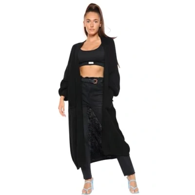 janisramone Womens Chunky Knitted Maxi Cardigan Ladies Oversized Balloon Sleeve Warm Long Jumper Sweater Black