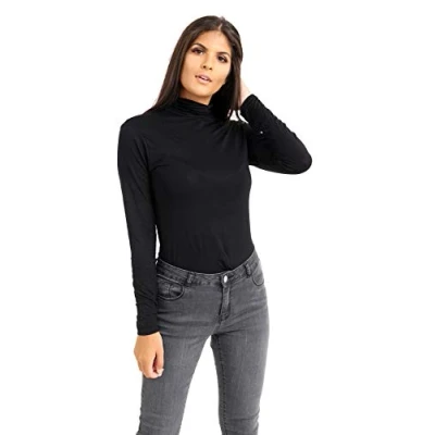 janisramone Womens Ladies Long Sleeve Turtle Polo Neck T Shirt Slim Fit Jersey Casual Basic Plain Tee Vest Top Black