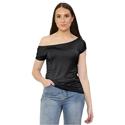 π Off Shoulder Bardot T-Shirt: Perfectly tailored Stretchy Bardot Top is designed and stitched so perfectly that it grabs your body shape like an animated silhouette. The short-length T-shirt Top and the elegant off-shoulder neckline is perfect to capture the attention of all around you. Style yourself effortlessly in a soft breathable top. Embrace the cool beautiful look! π Excellent Features: This amazing Bardot top for women comes with stylish much-needed features like an off-shoulder Bardot neckline, short cap sleeves, skinny slim fit size, regular t-shirt top length, pullover design, and plain colors. π Comfort Fabric: This womenβs top is made from high-quality material 95% Viscose, 5% Elastane. Which is perfect, satisfying & comfortable. It is completely sweat-free, dries quickly after wash, and machine washable. Perfectly comfortable to wear in Winter, Summer, Monsoon, Spring, Autumn. π Perfectly Tailored Piece: This cap sleeve t-shirt top suits all body shapes and sizes. Fits perfectly well from UK8-22. The approximate length of the top is 26 inches. It is available in trendy Black, Royal Blue, Cerise, White, Stone, Purple, Neo Green, Red, Blue, Teal, Wine solid colors. Color may vary due to studio lights. π Glam Up the Floor: This simple yet attractive T-shirt for ladies can be paired with PVC Leggings and Skinny jeans. Enhance your appearance by adding lightweight tassel chains and earrings. You can wear this off-shoulder top in any casual party or evening party, travel, dinner dates, night clubs. Also, with a jacket or shrug, you can wear it at your workplace.