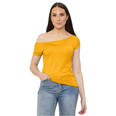π Off Shoulder Bardot T-Shirt: Perfectly tailored Stretchy Bardot Top is designed and stitched so perfectly that it grabs your body shape like an animated silhouette. The short-length T-shirt Top and the elegant off-shoulder neckline is perfect to capture the attention of all around you. Style yourself effortlessly in a soft breathable top. Embrace the cool beautiful look! π Excellent Features: This amazing Bardot top for women comes with stylish much-needed features like an off-shoulder Bardot neckline, short cap sleeves, skinny slim fit size, regular t-shirt top length, pullover design, and plain colors. π Comfort Fabric: This womenβs top is made from high-quality material 95% Viscose, 5% Elastane. Which is perfect, satisfying & comfortable. It is completely sweat-free, dries quickly after wash, and machine washable. Perfectly comfortable to wear in Winter, Summer, Monsoon, Spring, Autumn. π Perfectly Tailored Piece: This cap sleeve t-shirt top suits all body shapes and sizes. Fits perfectly well from UK8-22. The approximate length of the top is 26 inches. It is available in trendy Black, Royal Blue, Cerise, White, Stone, Purple, Neo Green, Red, Blue, Teal, Wine solid colors. Color may vary due to studio lights. π Glam Up the Floor: This simple yet attractive T-shirt for ladies can be paired with PVC Leggings and Skinny jeans. Enhance your appearance by adding lightweight tassel chains and earrings. You can wear this off-shoulder top in any casual party or evening party, travel, dinner dates, night clubs. Also, with a jacket or shrug, you can wear it at your workplace.