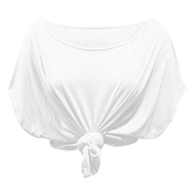 janisramone Womens Ladies New Plain Tie Knot Front Batwing Short Sleeve Baggy Oversized Casual Crop T Shirt Top White
