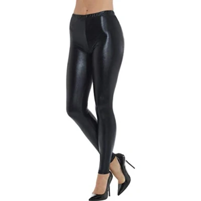 New Fashion Style Shiny American Metallic Wet Look Stretchy Disco Leggings Material: 95% Polyester 5% Elastane Excellent Quality Elasticated Waistband Full Ankle Length Skinny Fit Leggings Pants Length: 37 Inches Approx. Soft Comfortable Lightweight Stretchy Fabric Ideal For Disco Party Wear