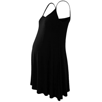 janisramone Womens Ladies New Sleeveless Plain Floaty Flare Strappy Maternity Camisole Swing Dress Long Top Black