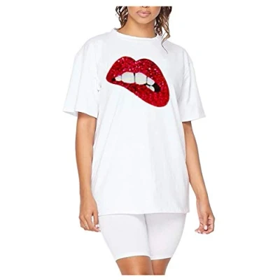 New Fashion Slogan Printed Short Sleeve Baggy Longline T-Shirt PJ Dress Cycling Shorts Casual 2 Pcs Co-Ord Set Perfect For Dance, Jogging, Fitness, Daily Casual Holiday Loungewear. Excellent Quality Round Neck Baggy Oversized Top Elasticated Waist Cycling Shorts Dance Active Casual Summer Loungewear Length: 28 Inches Approx. (Top), 18 Inches Approx. (Shorts) Soft Stretchy Comfortable Material.