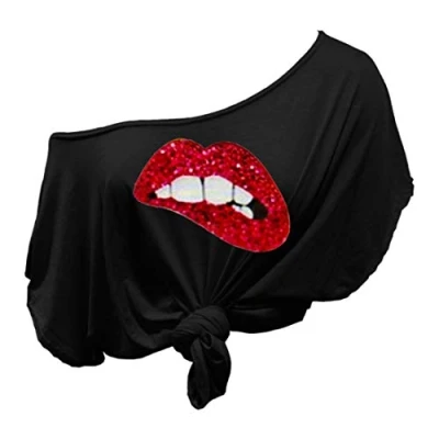 New Fashion Short Batwing Sleeve Slogan Printed Off Shoulder Tie Knot Front Crop T-Shirt Top Material: 95% Viscose 5% Elastane Excellent Quality Scoop Neck Baggy Oversized Bardot Loose Fit Tee Mini Top Tie Need To Be Made And Tied Yourself As This is a Plain Baggy Top Soft Strechy Comfortable Material, Ideal For All Occasion.