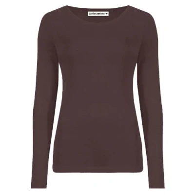 janisramone Womens Ladies Round Neck Long Sleeve T Shirt Stretchy Plain Fitted Basic Jersey Casual Tee Top Brown
