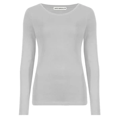 janisramone Womens Ladies Round Neck Long Sleeve T Shirt Stretchy Plain Fitted Basic Jersey Casual Tee Top Grey