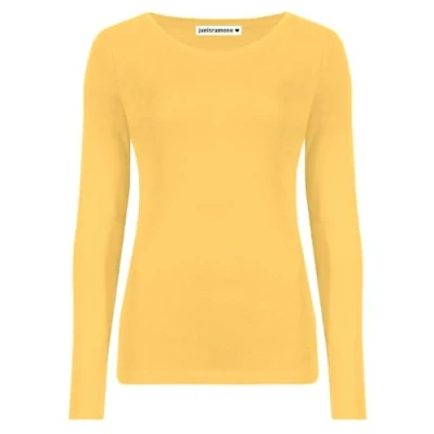 janisramone Womens Ladies Round Neck Long Sleeve T Shirt Stretchy Plain Fitted Basic Jersey Casual Tee Top Mustard