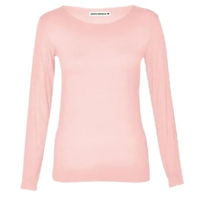 janisramone Womens Ladies Round Neck Long Sleeve T Shirt Stretchy Plain Fitted Basic Jersey Casual Tee Top Nude