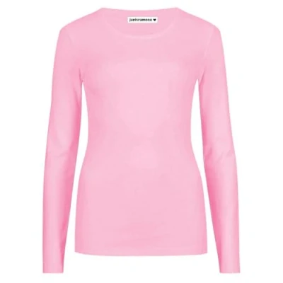 janisramone Womens Ladies Round Neck Long Sleeve T Shirt Stretchy Plain Fitted Basic Jersey Casual Tee Top Rose Pink