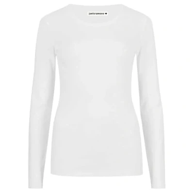 janisramone Womens Ladies Round Neck Long Sleeve T Shirt Stretchy Plain Fitted Basic Jersey Casual Tee Top White