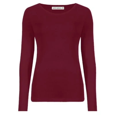 janisramone Womens Ladies Round Neck Long Sleeve T Shirt Stretchy Plain Fitted Basic Jersey Casual Tee Top Wine
