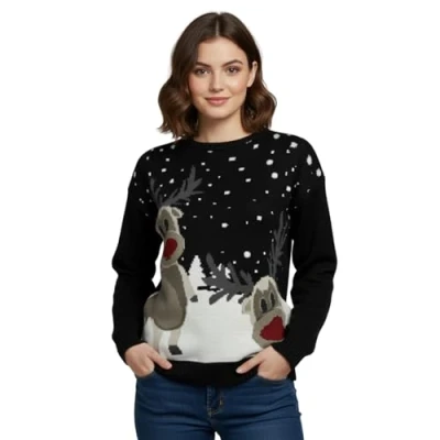 Comfortable Design: Crafted from 100% acrylic for a cozy feel, these Christmas jumpers for women keep you warm and stylish. Features a crew neck and long sleeves for a classic fit, perfect for womens Christmas jumpers. A standout piece among ladies Christmas jumpers, it combines comfort with festive cheer. Fun Holiday Style: Embrace holiday humor with this novelty Xmas jumper featuring a reindeer and other Xmas designs. Perfect as an ugly Christmas jumper or a playful option among funny Christmas jumper styles. Bring smiles wherever you go with this standout piece in Rudolph Christmas jumpers. Easy Care: This Christmas sweatshirt for women is machine washable for hassle-free maintenance. Durable material ensures your Christmas jumpers look great to wear after wear, whether you're donning a womens Christmas jumper or switching to other festive tops. Perfect for Celebrations: A must-have for Christmas jumpers for women uk, combining seasonal style with British festive charm. Choose from a variety of designs for Christmas tops, xmas jumper, and ugly xmas jumpers. Celebrate in style with women's Christmas jumpers that reflect the season s joy. Versatile Sizes: These Christmas jumpers ladies are available in sizes 8-26. Designed to fit perfectly for all occasions, whether you're rocking xmas womens jumpers or dressing up in funny Christmas jumpers.