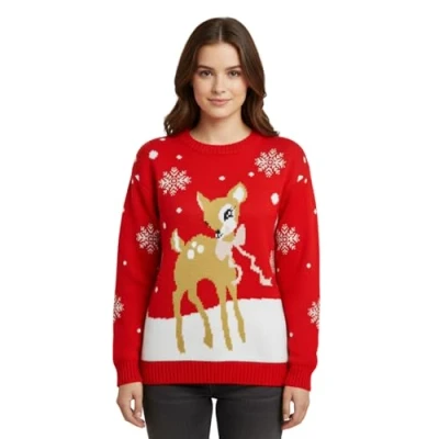 Comfortable Design: Crafted from 100% acrylic for a cozy feel, these Christmas jumpers for women keep you warm and stylish. Features a crew neck and long sleeves for a classic fit, perfect for womens Christmas jumpers. A standout piece among ladies Christmas jumpers, it combines comfort with festive cheer. Fun Holiday Style: Embrace holiday humor with this novelty Xmas jumper featuring a reindeer and other Xmas designs. Perfect as an ugly Christmas jumper or a playful option among funny Christmas jumper styles. Bring smiles wherever you go with this standout piece in Rudolph Christmas jumpers. Easy Care: This Christmas sweatshirt for women is machine washable for hassle-free maintenance. Durable material ensures your Christmas jumpers look great to wear after wear, whether you're donning a womens Christmas jumper or switching to other festive tops. Perfect for Celebrations: A must-have for Christmas jumpers for women uk, combining seasonal style with British festive charm. Choose from a variety of designs for Christmas tops, xmas jumper, and ugly xmas jumpers. Celebrate in style with women's Christmas jumpers that reflect the season s joy. Versatile Sizes: These Christmas jumpers ladies are available in sizes 8-26. Designed to fit perfectly for all occasions, whether you're rocking xmas womens jumpers or dressing up in funny Christmas jumpers.