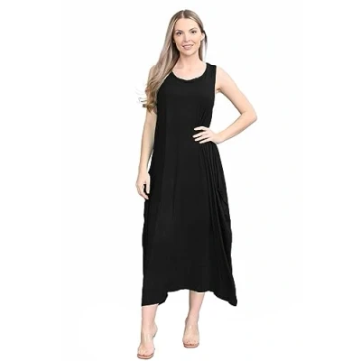 janisramone® Womens Parachute Dress Italian Lagenlook Tulip Maxi Dresses for Women UK Ladies Long Summer Stretchy Sleeveless Tunic Black