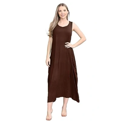 janisramone® Womens Parachute Dress Italian Lagenlook Tulip Maxi Dresses for Women UK Ladies Long Summer Stretchy Sleeveless Tunic Brown