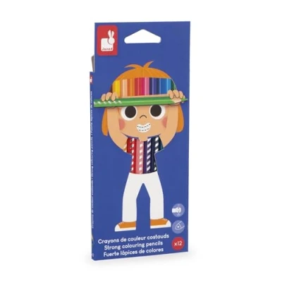Janod 12 Coloured Pencils Colouring & Drawing Ergonomic Triangular Shape Resistant Lead Creative Hobbies and Crafts Ages 3+ J07408