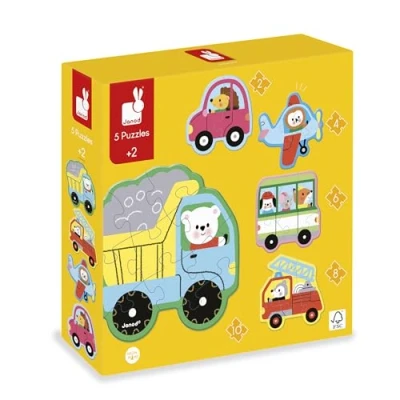 5 PROGRESSIVE PUZZLES: This set contains 5 puzzles with 2, 4, 6, 8 and 10 pieces each. Immerse yourself in the world of vehicles. A fun and progressive game that accompanies children from 2 years old in their early learning. QUALITY AND SAFETY: FSC cardboard puzzles, sturdy and suitable for little hands. Bright colours and easy-to-handle pieces for confident playtime. LEARNING THROUGH PLAY: Promotes fine motor skills, logic and concentration. Each puzzle helps children progress at their own pace while discovering vehicles. FEATURES: 5 puzzles with 2, 4, 6, 8 and 10 pieces. Colourful background to make assembly easier. From 2 years old. Easy care: clean with a slightly damp cloth. THE POWER OF PLAY: With bold and innovative collections, Janod accompanies children on the most beautiful of adventures: growing up! Beautiful toys for learning without even noticing, exploring the world, dreaming and sharing... Well done!, Manufacturer: JURATOYS