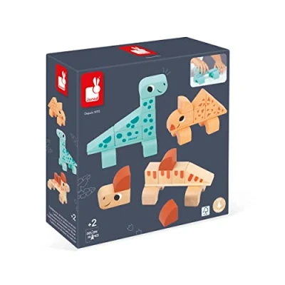 Janod Cubikosaurus Dinosaur Construction Game 3 Build Your Own Dinosaurs Stackable Early learning Toy FSC Wooden 24 Months +, J05833