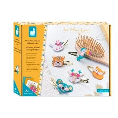 Janod J07997 6 Piece Create Your Own Hair Clip Set Sequinned Animals Les Ateliers Bijoux Children’s Arts & Crafts Kit Mastering Fine Motor Skills Creativity Years and up J07997, Multicolor
