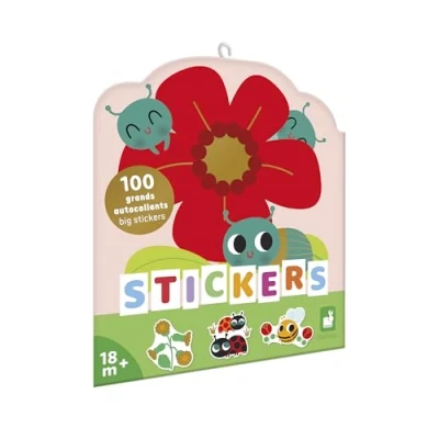 MY FIRST STICKERS: Here are 100 stickers on the theme of garden creatures. Large size and cut-out edges for easy handling, these stickers are unique for learning about animals! EASY-TO-USE STICKERS: 6 sheets with no edges for easy handling. Size suitable for little hands, with gold effects on 2 sheets for an elegant finish. STIMULATES MOTOR SKILLS AND IMAGINATION: Stick, decorate, invent... This activity develops fine motor skills, creativity and concentration, while providing a fun and calming experience. FEATURES: Flower-shaped pouch, 6 sheets (20 x 17 cm), 100 little creature stickers, 2 sheets with gold accents. Suitable for ages 18 months and up. THE POWER OF PLAY: With bold and innovative collections, Janod accompanies children on the most beautiful of adventures: growing up! Beautiful toys for learning without even noticing, exploring the world, dreaming and sharing... Well done!, Manufacturer: JURATOYS