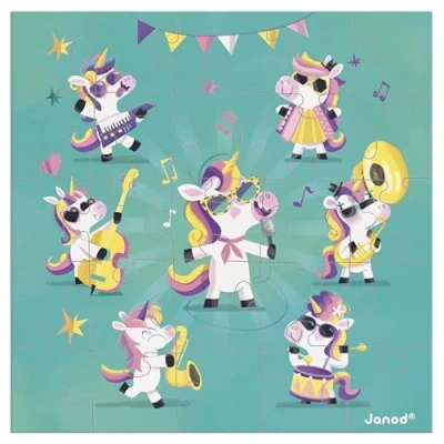 Janod Puzzle greeting card 25 piece Unicorn Gift + 1 envelope Ideal for birthday cards, cards Ages 3