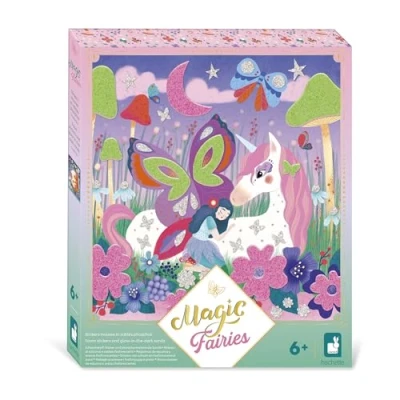 CREATE A SCINTILLING FAIRY WORLD: Bring fairyland to life with this creative kit: 5 pictures to decorate, foam stickers, glitter and glow-in-the-dark sand. A magical box for bright, colourful creations from age 6! DEVELOP CHILDREN'S CREATIVITY: This creative kit from age 6 stimulates children's creativity, dexterity, patience and logical thinking. By following the models and decorating with stickers, they perfect their ability to reproduce shapes and instructions. MAGIC FAIRIES COLLECTION: Discover the ‘Magic Fairies’ collection with creative kits and decoration workshops for children, on the theme of fairies, in a soft, floral style. For enchanting creative afternoons! SPECIFICATIONS: Contains 3 boards, 300 rhinestones and 1 step-by-step booklet with templates. Materials used: Paper, Cardboard, Plastic, Adhesive. Recommended age range: from 5 years. MAGIC FAIRIES: This creative kit is part of a collection developed in collaboration with Hachette Editions, renowned for their expertise in children's creative leisure activities and their ability to adapt to the needs and expectations of every age group., Manufacturer: JURATOYS