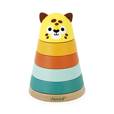 EARLY-LEARNING TOY: This FSC-certified wooden stacking toy is ideal for helping toddlers learn colours and develop their handling skills. This beautiful toy will proudly sit in baby's room where it will find pride of place, thanks to its colourful design. LEARNING THE COLOURS: This early-learning toy will help children develop their fine motor skills and get a handle on the colours. To help them stack the different shapes, a colour guide can be found on the toy’s pole. TROPIK COLLECTION: Janod’s complete collection of tropical jungle-themed educational early-learning toys in roaringly cheerful colours! Get up close and personal with the endearing, fun and colourful characters who will jazz up your baby’s bedroom. FEATURES: Contains 1 stand and 5 stackable pieces. Dimensions: 3.7 x 3.7 x 5.3 inches (9.5 x 9.5 x 13.5 cm). Material used: FSC-certified wood (beech). Recommended age range: from 1 to 3 years old. THE POWER OF PLAY: By means of its bold and innovative collections, Janod accompanies children on the most wonderful adventure of all: growing up! Meticulously designed toys help little ones to unknowingly learn whilst exploring the world and daydreaming.