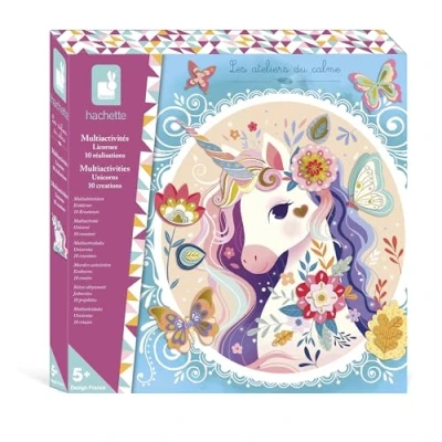 Janod Unicorn Multi Activity Creative Set 13 Activities to Decorate Mosaics, Glitter Stickers & Gold Paper Ages 6 and up