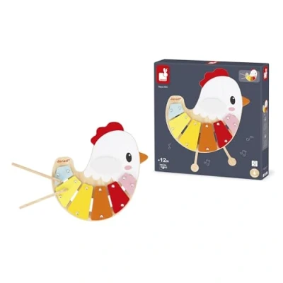 MUSICAL CHICK: This cute chick-shaped xylophone invites toddlers aged 12 months and up to discover sounds in a colourful and reassuring world. CLEVER TOY: The chick's legs turn into drumsticks and can be stored inside. A clever and fun design so nothing gets lost! SENSORY AWARENESS: By tapping on the 6 metal tones, children develop their hearing and fine motor skills while having fun. FEATURES: Musical toy made of FSC wood and metal, comes with 2 drumsticks. Easy to clean (surface wash). From 12 months. THE POWER OF PLAY: With bold and innovative collections, Janod accompanies children on the most beautiful of adventures: growing up! Beautiful toys for learning without even noticing, exploring the world, dreaming and sharing... Well done!, Manufacturer: JURATOYS