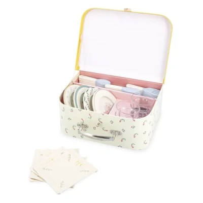 HOST A PICNIC: This dinette for 4 includes plates, cutlery, glasses and napkins, all decorated with pretty floral motifs. The soft colours will appeal to children aged 3 and over for creative, fun meals. A PRACTICAL AND COLOURFUL CASE: With its integrated wedge, this case makes it easy to store and transport the whole dinette. It's perfect for taking your picnic set with you wherever you go, whether you're playing outside or at home. EDUCATIONAL BENEFITS: The wooden dinner set helps your child to discover daily rituals. They learn how to set the table and place each item correctly. By imitating everyday gestures, they can develop their independence while having fun playing in the kitchen! THE LICORN UNIVERSE: At Janod, unicorns aren't just magical, they're downright mischievous! With their well-kept secrets and their poetic world of timeless colours, they add a touch of magic... Let yourself be bewitched! THE POWER OF PLAY: With bold, innovative collections, Janod accompanies children on the most beautiful of adventures: growing up! Beautiful toys for learning without even realising it, exploring the world, dreaming and sharing... Well done!, Manufacturer: JURATOYS