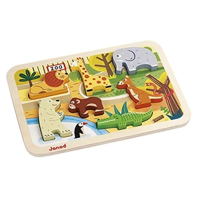 DISCOVER ANIMALS FROM THE ZOO : with this wooden puzzle, your child will be amazed by discovering animals from the zoo : its seven integrated pieces and pretty illustrations will delight little ones : the lion, giraffe, elephant, kangaroo, monkey, polar bear and crocodile are all waiting for them IMAGINE AND DISCOVER : your child will be able to invent beautiful stories from the seven animals presented in this puzzle : ideal for developing their imagination and ensuring superb play sessions : the wooden pieces are suitable for little hands and will also serve as figurines CHARACTERISTICS : contains one board and seven wooden pieces : dimensions of puzzle : Length 30 cm x Width 2.1 cm x Height 21 cm (12 x 0.8 x 8.3 inches) : material(s) used : wood (plywood for board and MDF for pieces) : recommended age range : from 18 months to three years CHUNKY PUZZLE COLLECTION : Chunky puzzle is a range of first age puzzles in vibrant colors, ideal for developing your child's imagination and hand / eye coordination while making him discover his first words FRENCH DESIGN : Janod games are designed in France, in the Jura, with particular attention paid to the materials used, style and colours : original, daring, educational and thoughtful toys and games to support your children in their development and their cognitive, psychomotor and socio-emotional development, Manufacturer: Janod