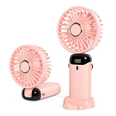 JANREAY Mini Handheld Fan, USB Desk Small Table Fan with 5 Speeds and Battery, Cooling, Foldable Electric for Travel, Office, Household (Pink)