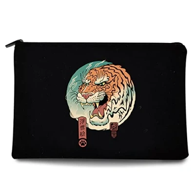 Japan Cat Printed Zip Canvas Pouch Makeup Bag Make Up Bag, Cosmetic Travel Bag,Toiletry Bag,Organizer Bags,Toiletry Bags, Bride Bridesmaid Bag,Pencil Bag,Wash Bag,Coin Purse (Japan Tiger)