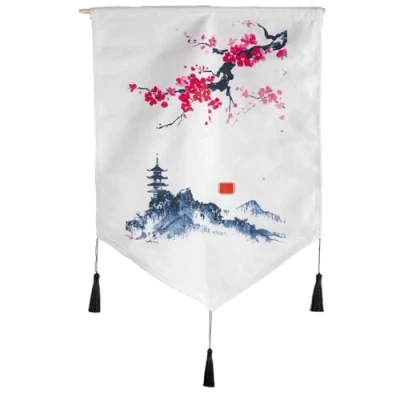 Japanese pagoda material: cotton. JAPANESE PADDLE SIZE 44cm WIDE 56cm HIGH Japanese paddle colour: multi-coloured. Asian Decorative Sign - Japanese Sign Wonderful Japanese sign with a pagoda lost in the heart of a wonderful Asian landscape. A wonderful gift idea for Asian culture lovers