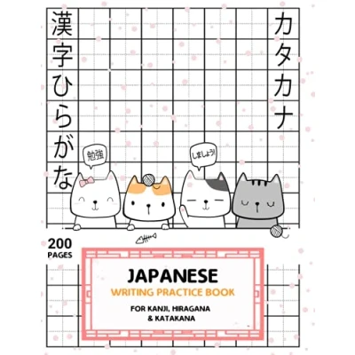 Japanese writing practice book: 200 pages to write kanji, hiragana and katakana 8.5x11 big squares Genkouyoushi notebook
