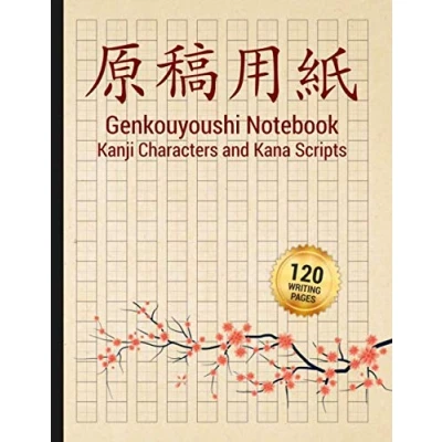 Japanese Writing Practice Genkouyoushi Notebook: Large Kanji Characters and Kana Scripts Exercise Book for Kids Adults