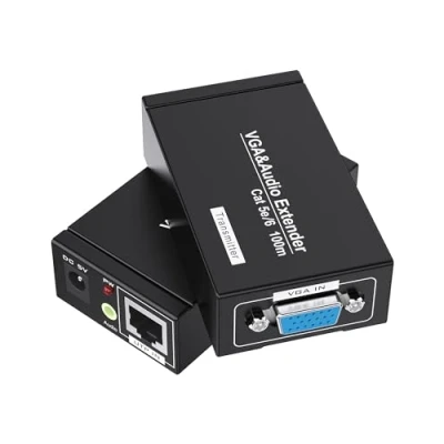 Jaremite VGA Extender to Cat5e/Cat6 Ethernet Cable, 328ft/100m, Sender+Receiver, Transmitter Receiver, Black