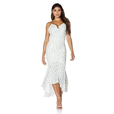 Jarlo London Lux Cami Strap High Low Print Midi Dress, Spot Print, UK 8
