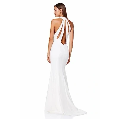 Jarlo London Women's Cecily Halter Neck Maxi Dress, Ivory, 14