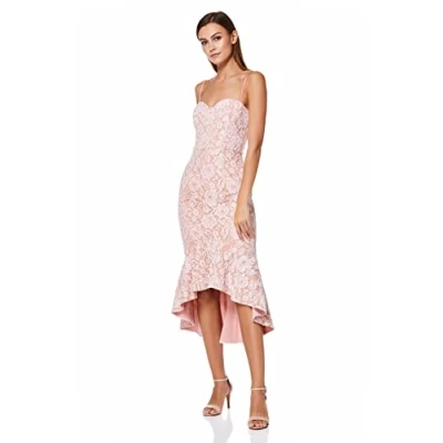 Jarlo London Women's Cleo All Over Lace Cami Strap Midi Dress, Pink/Nude, 8