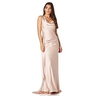 Jarlo London Gabriella Cowl Neck Fishtail Gown with Open Back, Champagne Nude, UK 12