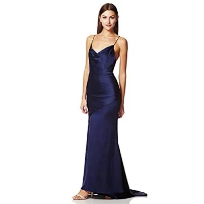 Jarlo London Women's Roxanne Cowl Neck Maxi Dress with Open Back, Navy, 6