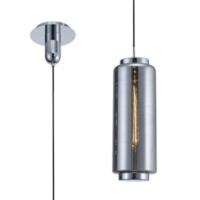 Jarras Pendant 20cm Round E27 (Max 40W) Chrome/Ash Grey Glass 1 Year Warranty Mantra