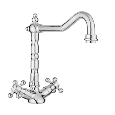 JASSFERRY French Classic Mixer Tap Traditional Crosshead Handles Monobloc Kitchen Sink Faucet with Swivel Spout Chrome Polished