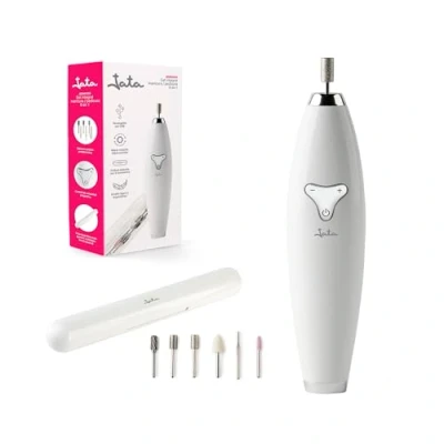 Jata JBSM1200 Professional Manicure Pedicure Set, Dual Way Rotation, Includes 6 Accessories Case, Progressive Speed Control, USB Rechargeable, White